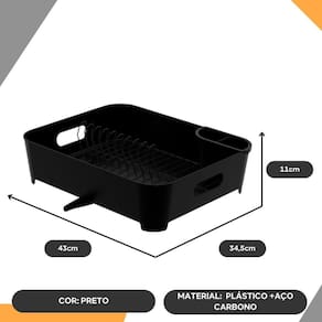 ========== sobre o produto ========== O escorredor de louça com capacidade para 10 pratos e porta talheres é o complemento ideal para a sua cozinha, oferecendo praticidade e organização na hora de secar suas louças. Com um sistema de escorrimento móvel e uma grade interna, este escorredor proporciona uma secagem eficiente e rápida, mantendo seus pratos, copos e talheres organizados e livres de manchas. Além disso, o porta talheres removível permite uma fácil limpeza e acomodação dos utensílios. Seu design moderno e funcional se adapta a qualquer estilo de cozinha, garantindo praticidade e beleza ao ambiente. ========== especificações ========== Comporta até 10 pratos, proporcionando espaço suficiente para secar louças de uma refeição completa. Sistema de escorrimento móvel que facilita o escoamento da água e evita o acúmulo de umidade. Grade interna que auxilia na organização dos utensílios e evita que escorram para fora do escorredor. ========== ficha técnica ========== Medidas: 43 x 34,5 x 11cm Material: plástico + aço carbono Capacidade: 10 pratos Marca: future : 3 meses Estamos online para quaisquer dúvidas, Agradecemos e aguardamos o seu pedido. Marca: Não Informado