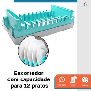 Características: Tem capacidade para 12 pratos removendo recepiente de talheres e 5 copos. Inclui 2 recipientes de talheres removíveis para melhor acomodação. Escorrimento automático. Multifuncional e Grande capacidade de armazenagem. Leve e Dobrável. Entrada nas laterais para carregar facilmente para qualquer lugar. Este escorredor evita que seus pratos e copos fiquem em cima. Útil para manter a ordem em sua cozinha.