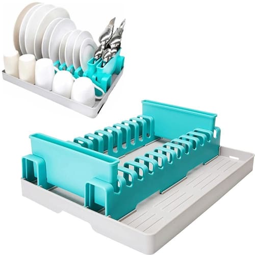 Escorredor De Louça Cozinha Pia 12 Pratos Copo Porta Talheres Plástico Moderno - Staremcasa Escorredor de louça de plástico dobrável StaremCasa em azul aqua com design cinza, perfeito para sua casa. Com um ótimo design, este escorredor desmontável de polipropileno de alta qualidade é higiênico, ergonômico e funcional.