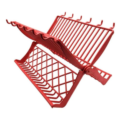 Escorredor de louça dobrável prato porta talheres copo xicaras - vermelho Escorredor de louça dobrável 15 pratos 12 ganchos xícaras + porta talheres - vermelho - escorredor de louças moderno e compacto. - modelo em plástico duro e resistente. - capacidade de 15 pratos, ganchos para 12 xícaras e 2 portas talheres laterais. - design moderno com aberturas para escorrer a água - prático e simples de usar Dados técnicos - dimensões escorredor de louças fechado: 34cm x 34cm x 10cm - material: plástico - capacidade para pratos: 15 - capacidade para xícaras: 12 - cor escorredor de louças: vermelho Itens inclusos - 01 escorredor de louças dobrável vermelho Marca: Dr.util