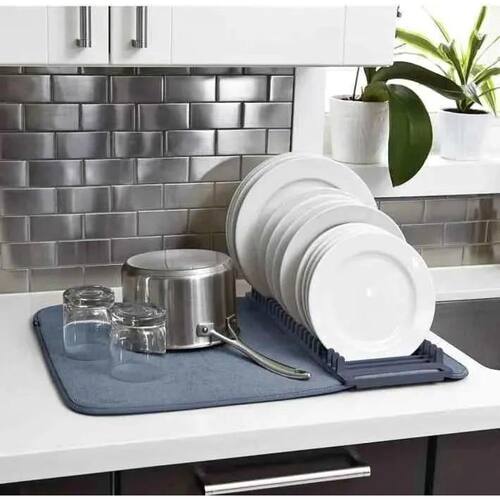 Facilite a rotina na cozinha com o prático e versátil Tapete Escorredor de Louças Dobrável Multifuncional com Microfibra Este conjunto é ideal para uma secagem rápida, organizada e eficiente, além de economizar espaço em sua bancada, sendo perfeito para uso em casa ou em viagens.