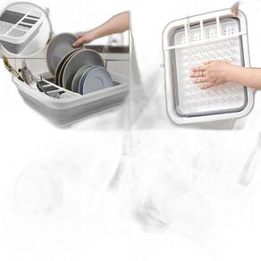 Escorredor Louças Prato Retrátil Silicone Retrátil Secador Cozinha Copos Compacto Design Retrátil e Ajustável: Este escorredor é a solução perfeita para manter a sua pia organizada. Seu design retrátil permite ajustá-lo para caber em diferentes tamanhos de pia, economizando espaço quando não está em uso, ideal para cozinhas pequenas. Espaço para Organização: Com diversos compartimentos para armazenar copos, pratos e até mesmo um suporte removível para talheres, este escorredor garante uma secagem organizada e eficiente da sua louça. Durável e Resistente: Fabricado com material de silicone durável e polipropileno resistente, este escorredor oferece durabilidade ao não enferrujar e é fácil de limpar. Além disso, sua estrutura compacta o torna ideal para uso diário na sua cozinha.