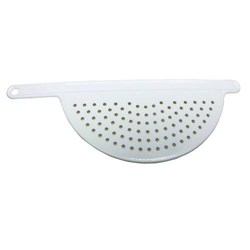 Escorredor Meia Lua Para Massas E Legumes Decor-Útil Branco Escorredor em formato de meia lua é ideal para escorrer macarrão, legumes, separar caldos e o que mais precisar. Fácil de usar, limpar e guardar. Cabe em qualquer armário com cabo para usar direto na panela, tigela ou em potes, com pinos na parte de trás que apoiam a borda da panela e furo na extremidade do cabo para pendurar. Pode ser guardado até na gaveta. Fabricado em material altamente resistente. Com o Escorredor Meia Lua Decor-Útil você terá mais praticidade e rapidez ao preparar suas refeições. Produto indispensável em qualquer cozinha. Cor: branco Medidas: 34,0 cm comp x 12,0 cm larg x 2,0 cm alt Material: plástico pp