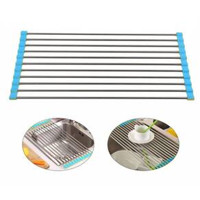 Escorredor Multiuso Flexível Em Inox E Silicone Azul 43 X 28 Cm