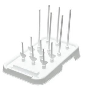 O escorredor da Kuka possui design que mantém os acessórios do bebê secos e organizados pronto para o uso, facilitando assim o dia-a-dia da mamãe. As 12 hastes em polipropileno são desmontáveis, facilitando a limpeza. O reservatório evita que a água escorra para fora, permitindo a utilização sobre mesas e balcões além da pia da cozinha. Mede aproximadamente 20 x 30 cm LxC (medida sem as hastes).