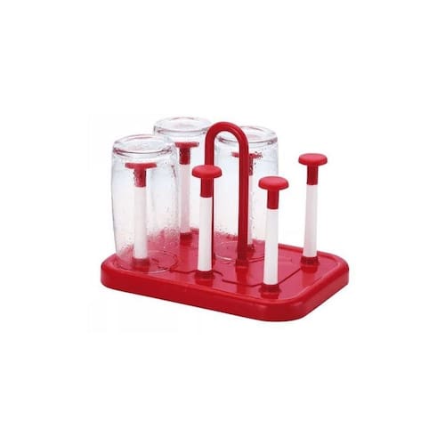 Medidas: 17cm x 23cm x 17cm Composição: plástico reforçado Cor: base vermelha, hastes branca Capacidade: 06 copos