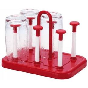Escorredor porta copos de cozinha pia mesa 6 lugar vermelho Escorredor porta copos 6 lugares - vermelho