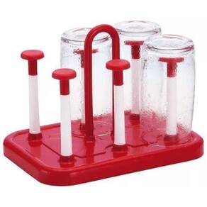 Medidas: 17cm x 23cm x 17cm Composição: plástico reforçado Cor: base vermelha, hastes branca Capacidade: 06 copos