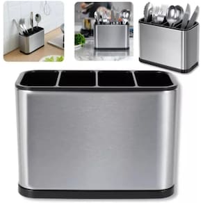 - Economia de espaço - 4 compartimentos divididos para separar e organizar seus utensílios de cozinha. Não ocupa a maior parte do espaço no seu armário ou balcão. Mantenha as bancadas limpas, sem mais bagunça ao redor da pia.
