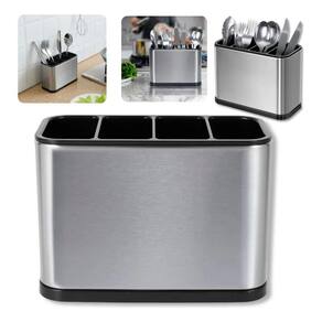 Suporte Porta Talher Organizador Aço Inox Divisões Silver Escoamento Fácil