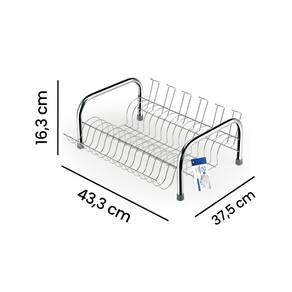 Escorredor PRATIK Arthi Cromado (1078) O Escorredor PRATIK da Arthi é a opção funcional que combina excelente capacidade com todos os acessórios de organização essenciais. Características Físicas e Funcionais: Capacidade: Comporta 15 pratos. Acessórios: Inclui Suporte para 6 copos e local reservado para talheres. Material: Construído em Aço Cromado, conferindo brilho e resistência à umidade. Marca: Arthi (Ref. 1078). Especificações Técnicas: Dimensões: Comprimento 43,3 Largura 37,5 Altura 16,3 cm Material: Aço Cromado