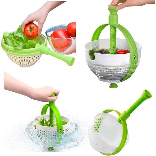 Escorredor Secador De Legumes Com Cabo Giratório Centrífuga Diga adeus aos legumes e verduras encharcados Nosso escorredor e secador com sistema de centrífuga e cabo giratório é a solução prática e eficiente que faltava na sua cozinha. Prepare saladas crocantes e saborosas em instantes, sem esforço e com resultados profissionais. Sistema de Centrífuga Eficiente: Remove o excesso de água dos seus legumes e verduras de forma rápida e eficaz, garantindo uma textura ideal para suas preparações. Cabo Giratório Ergonômico: Design inteligente que facilita a rotação da cesta interna com o mínimo de esforço, tornando o processo de secagem muito mais simples e confortável. Cesta Interna Removível: Facilita a lavagem dos legumes e verduras diretamente dentro do escorredor e a transferência para outros recipientes. Base Antiderrapante: Garante estabilidade durante o uso, evitando acidentes e proporcionando maior segurança. Material Durável e Seguro: Fabricado com materiais de alta qualidade, resistentes e livres de BPA, garantindo a segurança alimentar e a longa vida útil do produto. Fácil de Limpar: Design simples que permite uma higienização rápida e completa após o uso. Especificações Técnicas: - Modelo: Escorredor Secador com Cabo - Material: PP/ABS - Comprimento do cabo: 18cm - Dimensões: 39,5cm COMPRIMENTO x 21,5cm LARGURA x 12,5cm ALTURA 18cm DIÂMETRO - Cor: Verde com Branco Itens Inclusos: - 01x Escorredor Secador
