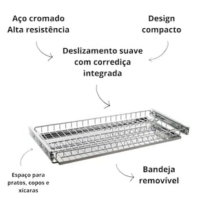 O Escorredor de Louças Deslizante Slim para Módulo Aéreo é a solução inteligente para otimizar o espaço na sua cozinha. Ele possui fixação lateral e opera com corrediças, permitindo um deslizamento suave para facilitar o armazenamento.