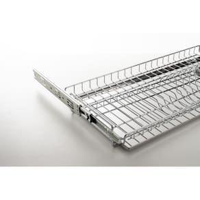 - Produzido em aço carbono com acabamento cromado - Espessura do arame: 4,00 mm - Capacidade: 10 pratos - Acessórios: Corrediças telescópicas de 250 mm zincadas já montadas no aramado, 1 bandeja em aço inox 430 e kit de parafusos para fixação no móvel - Aplicação: fixação lateral em módulo aéreo - Código: 7095 - Cromado - Marca: GTB Aramados - Garantia: 1 ano