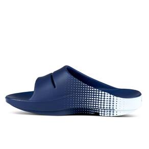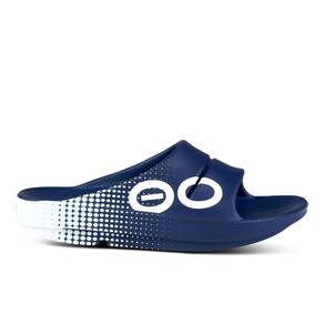 Slide de recuperação esportiva OOFOS OOAhh, Navy Matrix — feminino tamanho 9, masculino tamanho 7
