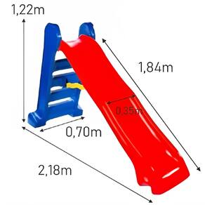 ESCORREGADOR GRANDE Com escada de 04 (quatro) degraus; Prancha tipo tobogã em cores vibrantes e diversificadas; Bordas salientes para maior segurança das crianças; Pigmento que não desbota com sol e chuva, garantindo a resistência e durabilidade do produto; Material: Polietileno, atóxico, aditivado com anti UV; Medidas: (A) 1,22m x (L) 0,70cm x (C) 2,18m Processo de fabricação: Roto moldagem; Peso: 16 kg; Peso Suportado: 50kg; AS CORES SÃO ENVIADAS DE ACORDO COM A DISPONIBILIDADE DE ESTOQUE.
