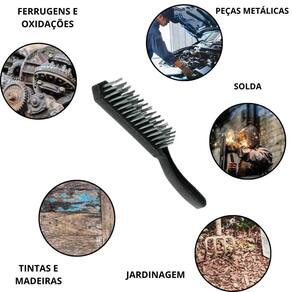 Ideal para: - limpeza de grelhas de churrasqueiras, chapas e espetos. - remoção de alimentos queimados e gordura incrustada. - uso doméstico e em churrascos ao ar livre, garantindo higiene e facilidade. - remoção de ferrugem, oxidação e resíduos em peças metálicas - remoção de escórias em solda - remove resíduos de construção e jardinagem terra, cimento e etc... - remove sujeira de partes de bike, moto e componentes industriais - Remove tintas em madeiras ou peças metálicas