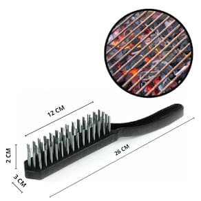 Especificações: - material: cerdas de aço inoxidável e cabo em plástico resistente. - cor: preto com detalhes em prata. - dimensões C x L x A : 26 x 3 x 3,5 cm. - altura das cerdas: 2 cm. - peso: aproximadamente 100 g.