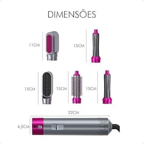 Escova Alisadora 5 Em 1: Transforme Seu Visual com Facilidade A Escova Alisadora 5 Em 1 é perfeita para transformar o seu visual com praticidade e facilidade. Com cinco fixações de escova intercambiáveis, você pode alisar, ondular, secar e estilizar o seu cabelo de diferentes maneiras. Segura e confortável, essa escova alisadora possui tecnologia avançada de íons negativos e revestimento cerâmico, que evitam o frizz e a eletricidade estática. As cerdas tufted e os pinos de nylon minimizam emaranhados e quebras, proporcionando uma massagem confortável no couro cabeludo. Com um design ajustável, o secador de cabelo tem capacidade de 1000W e oferece controle de temperatura de 3 velocidades, permitindo que você tenha melhor controle ao pentear. Além disso, é perfeito para uso em diferentes estações e adequado para todos os tipos de cabelo, ajudando você a obter facilmente o penteado que sempre quis. Leve e portátil, essa escova modeladora de ar é fácil de transportar e usar, tanto em casa quanto em viagens. Ela utiliza apenas ar para atrair e envolver os cabelos, tornando o processo mais confortável e sem dor no braço. Além disso, essa escova de ar de cabelo é versátil e proporciona ótimos resultados para todos os tipos de cabelo. Com ela, você pode criar resultados dignos de salão, deixando seus cabelos com um aspecto incrível. Essa escova alisadora é um ótimo presente para mulheres e meninas que desejam ter cabelos deslumbrantes e bem cuidados. Principais funções de cada ponta do secador: - Pré-moldado bico: seca o cabelo rapidamente e prepara para o estilo. - Barril de curling de 30mm: cria ondas flexíveis e flexíveis. - Ondulação de barril de 30mm: cria ondas flexíveis e flexíveis. - Pente suave: cria um efeito suave e proporciona uma massagem suave no couro cabeludo. - Cilindro de pente: cria um efeito fofo e pode ser para fazer ondas naturais. - Bocal de ondulação: faz cachos mais visíveis e duradouros. Especificações técnicas: - Material do Forro: Cerâmica - Peso Aproximado: 800g - Tamanho do pacote: 29.5 x 23.7 cm - Voltagem: bivolt - Comprimento do cordão de alimentação: cerca de 2m, com rotação de 360 graus. Marca: Não Informado