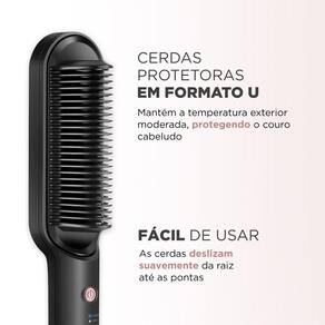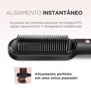 FÁCIL E PRÁTICO DE USAR Basta selecionar a temperatura desejada, aguardar o aquecimento e deslizar a escova pela mecha de cabelo desde a raiz até as pontas. O liso é instantâneo!