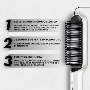 Prática, eficiente e segura, a Escova Alisadora 5 em 1 garante cabelos lisos,