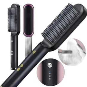 Escova alisadora de cabelo pente elétrico portátil Escova alisadora bivolt 5 em 1 - alisa, hidrata, modela, alinha e anti-frizz A escova alisadora de cabelos, foi especialmente desenvolvida para facilitar totalmente a sua vida, graças a sua tecnologia de alisar cada mecha do cabelo de maneira individual e ao mesmo tempo, sem causar danos aos fios, poupando seu tempo para que você possa aproveitar ainda mais o seu dia estando sempre arrumada, com os cabelos lisos e alinhados de forma rápida e prática, em menos de 20 minutos. A mesma, possui uma tecnologia exclusiva de multiplacas, que durante o uso da escova, cada mecha é dividida em 25 partes através de placas de cerâmica ptc com iôns, onde são alisadas, modeladas e alinhadas desde a raiz até as pontas de maneira individual. Esse processo evita que você passe a escova na mecha mais de uma vez, garantindo cabelos lisos e alinhados com apenas uma passada A escova alisadora conta com um sistema de temperatura inteligente. Contém um regulador de temperatura de 5 níveis adequados para cada tipo de cabelo: 200c - adequado para cabelos resistentes grossos ou crespos 185c - adequado para cabelos ondulados e levemente cacheados 170c - adequado para cabelos escuros ou com tintura 155c - adequado para cabelos descoloridos, com química ou fragilizados 140c - adequado para cabelos danificados, finos ou fragilizados É totalmente recomendada para todos os tipos de cabelo, porém para alcançar o resultado de um cabelo sedoso e saudável, antes da aplicação, certifique o grau mais adequado de acordo com o seu tipo de cabelo, para evitar problemas no efeito liso, danos e ressecamento Modo de usar: Ao pressionar o botão de liga/desliga você deve pressionar os botões de aumentar +/reduzir - , até selecionar a temperatura desejada. Quando o aparelho estiver aquecendo para atingir a temperatura selecionada, as luzes do indicador de temperatura ficarão piscando. Assim que a temperatura for atingida, as luzes ficarão fixas e acesas, indicando que o aparelho está pronto para ser . 1. Com os cabelos limpos e secos, utilize um pente ou escova para desembaraçar cada mecha. 2. Conecte o aparelho à tomada e aperte o botão power. 3. Ajuste a temperatura usando os botões de aumentar +/reduzir -. Para cabelos crespos ou grossos, sugerimos a temperatura 5 200oc . 4. Divida o cabelo em sessões e trabalhe com uma mecha por vez. Para cabelos crespos ou grossos, sugerimos trabalhar com mechas menores e mais finas. 5. Segure firmemente a mecha pelas pontas e puxe-a levemente para fora do rosto, de modo com que os fios fiquem firmes e esticados. 6. Continue segurando a mecha firmemente pelas pontas. Encaixe a escova alisadora na mecha e deslize-a lentamente em um movimento continuo para baixo. Quanto mais lentamente você deslizar a escova, mais lisos seus fios ficarão. Os fios devem adentrar completamente a escova para ficarem em contato com as mini-placas de cerâmica presente no interior das cerdas. 7. Após o uso, desconecte o aparelho da tomada imediatamente e aguarde até que ele esfrie completamente para depois guarda-lo. Especificações técnicas: Potência: 45w Frequência nominal: 50hz Voltagem: 110v/220v - bivolt automático Material das placas: cerâmica ptc Temperatura: 5 níveis 140c a 200c Conteúdo da embalagem: 1 escova pente alisadora de cabelo 1 manual