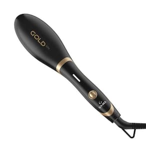 Escova Alisadora Gold Ion Mini Italy Bivolt A escova alisadora Gold Ion Mini da Italy é ideal para quem busca pde, sendo compacta e fácil de transportar. Com cerdas de pontas protetoras que deslizam suavemente, atinge até 220C e distribui o calor de forma homogênea, enquanto seu cabo giratório e função bivolt facilitam o uso. Utiliza a tecnologia Essential Oil com óleo de Argan, rico em nutrientes que hidratam, nutrem e protegem os fios contra os danos do calor. A emissão de íons negativos reduz o frizz, mantendo a umidade l e proporcionando cabelos mais brilhantes, sedosos e saudá de Escova Alisadora Formato da Escova Pente Tecnologias Essential oilsCeramic IonBivolt Essential Oils As cerdas exclusivas com óleo de Argan. Os óleos essenciais são ricos em antioxidantes, s e agentes umidificadores, que promovem brilho e proteção para todos os cabelos. A tecnologia é ativada pelo calor emitido pelo produto. Ceramic Íon Tecnologia com alta emissão de íons negativos que tem como principal função reduzir o frizz do cabelo, proporcionando brilho e maciez, melhorando sua aparência e mantendo os fios mais saudáveis. Temperaturas 1 Temperatura Máxima 220 Emissão de Íon Sim Potência 43W-47W Cabo Giratório Sim Comnto do Cabo 2 Metros Dimensões do Produto 6cm x 4,5cm x 35cm (Largura x Altura x Comnto) Dimensões da Embalagem 150cm x 6cm x 31cm (Largura x Altura x Comnto) Peso 331g NA Cor: PRETO Voltagem: BIVOLT