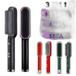 Escova alisadora multifuncional seca, alisa e modela Escova alisadora bivolt 5 em 1 - alisa, hidrata, modela, alinha e anti-frizz A escova alisadora de cabelos, foi especialmente desenvolvida para facilitar totalmente a sua vida, graças a sua tecnologia de alisar cada mecha do cabelo de maneira individual e ao mesmo tempo, sem causar danos aos fios, poupando seu tempo para que você possa aproveitar ainda mais o seu dia estando sempre arrumada, com os cabelos lisos e alinhados de forma rápida e prática, em menos de 20 minutos. A mesma, possui uma tecnologia exclusiva de multiplacas, que durante o uso da escova, cada mecha é dividida em 25 partes através de placas de cerâmica ptc com iôns, onde são alisadas, modeladas e alinhadas desde a raiz até as pontas de maneira individual. Esse processo evita que você passe a escova na mecha mais de uma vez, garantindo cabelos lisos e alinhados com apenas uma passada A escova alisadora conta com um sistema de temperatura inteligente. Contém um regulador de temperatura de 5 níveis adequados para cada tipo de cabelo: 200c - adequado para cabelos resistentes grossos ou crespos 185c - adequado para cabelos ondulados e levemente cacheados 170c - adequado para cabelos escuros ou com tintura 155c - adequado para cabelos descoloridos, com química ou fragilizados 140c - adequado para cabelos danificados, finos ou fragilizados É totalmente recomendada para todos os tipos de cabelo, porém para alcançar o resultado de um cabelo sedoso e saudável, antes da aplicação, certifique o grau mais adequado de acordo com o seu tipo de cabelo, para evitar problemas no efeito liso, danos e ressecamento Modo de usar: Ao pressionar o botão de liga/desliga você deve pressionar os botões de aumentar +/reduzir - , até selecionar a temperatura desejada. Quando o aparelho estiver aquecendo para atingir a temperatura selecionada, as luzes do indicador de temperatura ficarão piscando. Assim que a temperatura for atingida, as luzes ficarão fixas e acesas, indicando que o aparelho está pronto para ser . 1. Com os cabelos limpos e secos, utilize um pente ou escova para desembaraçar cada mecha. 2. Conecte o aparelho à tomada e aperte o botão power. 3. Ajuste a temperatura usando os botões de aumentar +/reduzir -. Para cabelos crespos ou grossos, sugerimos a temperatura 5 200oc . 4. Divida o cabelo em sessões e trabalhe com uma mecha por vez. Para cabelos crespos ou grossos, sugerimos trabalhar com mechas menores e mais finas. 5. Segure firmemente a mecha pelas pontas e puxe-a levemente para fora do rosto, de modo com que os fios fiquem firmes e esticados. 6. Continue segurando a mecha firmemente pelas pontas. Encaixe a escova alisadora na mecha e deslize-a lentamente em um movimento continuo para baixo. Quanto mais lentamente você deslizar a escova, mais lisos seus fios ficarão. Os fios devem adentrar completamente a escova para ficarem em contato com as mini-placas de cerâmica presente no interior das cerdas. 7. Após o uso, desconecte o aparelho da tomada imediatamente e aguarde até que ele esfrie completamente para depois guarda-lo. Especificações técnicas: Potência: 45w Frequência nominal: 50hz Voltagem: 110v/220v - bivolt automático Material das placas: cerâmica ptc Temperatura: 5 níveis 140c a 200c Conteúdo da embalagem: 1 escova pente alisadora de cabelo 1 manual