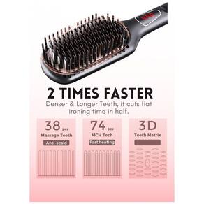 Transforme Seu Visual em Minutos A escova alisadora MEGAWISE, atualizada em 2023, utiliza duas unidades de aquecimento MCH de cerâmica (em comparação com PTC ou apenas uma MCH de outras marcas), garantindo um controle rápido e preciso da temperatura de até 230°C. Obtenha cabelos brilhantes, lisos e sem frizz em apenas alguns minutos.