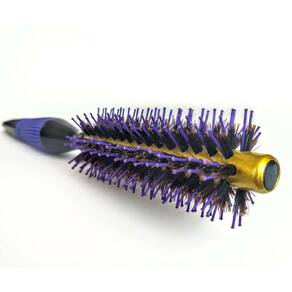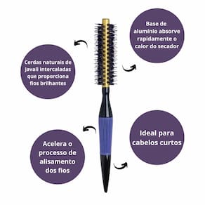 Escova térmica redonda de madeira com base de alumínio e cerdas naturais de javali intercaladas com pinos de nylon para alisar. A base de alumínio absorve rapidamente o calor do secador, acelerando o processo de alisamento dos fios. Ideal para alisamento de cabelos muito curtos e topetes, melhor tração no alisamento e cabelos mais brilhantes, cabo com suporte de borracha.