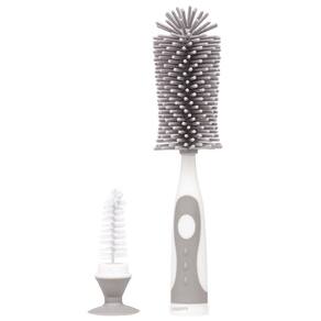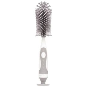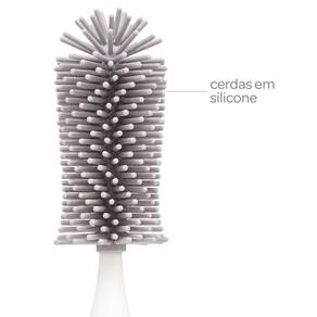 Escova para mamadeira e chupeta com cerdas em silicone que limpa sem danificar o recipiente, tem longa durabilidade e não acumula resíduos e nem odores. É ideal para lavar garrafas e mamadeiras, pois atinge áreas de difíceis de serem alcançadas. Acompanha limpador de bicos, que pode ser acessado desrosqueando o cabo da escova.