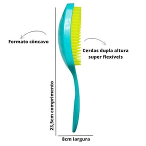 Escova Cabelo Free Flex Côncava Cerdas Flexíveis Marco Boni Cor: Verde e Amarelo Escova Raquete Free Flex Cerdas flexíveis e em dupla altura que proporciona um desembaraçar suave, diminuindo a quebra e perda dos fios. Características:Formato CôncavoCerdas dupla alturaReduz a quebra dos fiosPara usar com cabelos secos ou molhados. Medidas da escova: 24cm comprimento x 8cm largura Contém: 01 unidadeComposição: Plástico/ Nylon/ BorrachaValidade: indeterminada