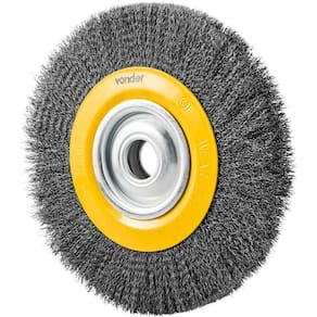 Material/acabamento das cerdas da escova: Aço carbono/polido | Tipo de cerdas da escova: Ondulada | Diâmetro: 10" - 254 mm | Espessura: 30 mm | Diâmetro do furo (pol/mm): 1.1/4" - 31,5 mm | Rotações por minuto (rpm): 3.600/min | Massa aproximada (peso) (kg): 1,401 kg