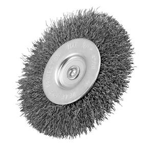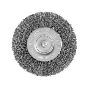 - Especificações Técnicas: Diâmetro: 4" (101,6 mm) Espessura: 1/2" (12,7 mm) Diâmetro do fio: 0,25 mm Rotação máxima: 4.500 RPM Haste: 1/4" (6,35 mm) Material das cerdas: Aço inox Material da haste: Aço carbono Peso aproximado: 0,150 kg