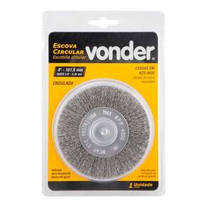 Escova Circular 4" com Cerdas em Aço Inox 4.500/min de Haste 1/4" - Vonder 63.25.450.004