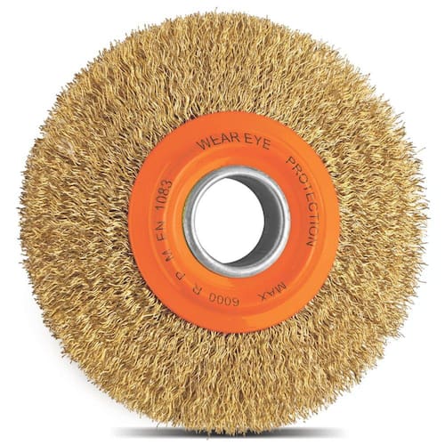 A linha de escovas da Tramontina PRO é utilizada para fazer a remoção de rebarbas, ferrugens, pinturas, carepas e respingos de solda, proporcionando acabamento em aços, madeiras, tubos e borrachas. Orientações Filamentos em aço latonado temperados.Diâmetro do filamento de 0,3 mm.Adaptadores 1/2", 5/8" e 3/4".EN 1083.Utilizadas nas aplicações de remoção de rebarbas, ferrugem e pintura de nível leve em aços, madeira e borracha.Utilizadas em moto esmeril com rotação até 6000 rpm.As ferramentas são submetidas a testes de aplicação prática para garantir sua resistência mecânica em uso intenso. As ferramentas são produzidas e testadas conforme normas específicas. Observações Use óculos, luvas e outros equipamentos de proteção de acordo com a tarefa a ser executada. Armazene as escovas em local protegido de umidade, condensação, chuva, água, ácido ou outros líquidos agressivos e vapores que possam causar oxidação nos filamentos e partes metálicas das escovas. Tenha cuidado com a ponta dos arames, pois eles podem ferir o usuário. Nunca use escovas que apresentem defeitos. Não altere as características da escova. Use as escovas somente nas máquinas recomendadas. Nunca ultrapasse a rotação máxima da escova. Sempre que possível coloque o corpo de modo a evitar ser atingido pelas partículas projetadas durante a escovação. Não use roupas largas. O cabelo longo deve ser protegido por uma rede e capacete. Evite pressão excessiva da escova na peça. O excesso de pressão reduz a eficiência da escova e pode provocar avarias na máquina. Proteja as mãos de todas as partes rotativas durante o processo de escovação. Armazene em local limpo e seco. Características Gerais EAN13 7891114158021 DUN14 17891114158028 NCM 9603.50.00 Peso Líquido 0,3000 kg. Peso Bruto 0,3800 kg. Metragem 0,001388 m³. Dimensões Embalagem (Compr. X Larg. X Alt.) 250x 185x 30 mm. Dimensões Produto (Compr. X Larg. X Alt.) 150x 13x 150 mm. Dimensão Extra A 150,0 mm. Dimensão Extra B 12,7 mm. Dimensão Extra C 32,0 mm.