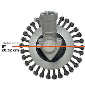 Escova Rotativa de Aço para Roçadeira é um acessório ideal para limpeza de gramas-baixas, musgos e matos em ruas pavimentadas,Em concretos, paralelepípedos, meio fios, pavers, calçadas verdes, cantos de paredes e principalmente em áreas de difícil acesso.ESPECIFICAÇÕES TÉCNICAS:- Diâmetro do furo de encaixe: 1 polegada 25,4 mm - Diâmetro da escova: 8 polegadas 20,32 centímetros - Material: açoProduto com 03 meses de garantiaCompatível com roçadeiras que possuem 1 polegada 25,4 mm