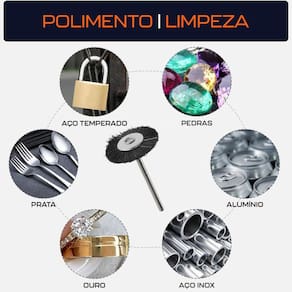 - Marca: Dremax - Referência: EC004 - Indicada para limpezas e acabamentos em superfícies - Diâmetro da escova: 22mm - Diâmetro da haste: 3mm - Comprimento total: 40mm - Material das cerdas da escova: Nylon - Super macia, para trabalhos delicados - Uso em micro retíficas de qualquer marca com pinça de 3,2mm - Indicada para polimento e acabamento em resina e metais moles - Muito utilizado também para realçar o brilho final de unhas naturais e todos os tipos de alongamento de unhas - Para trabalhos de acabamento também em vidro, pedra, madeira, plásticos e materiais similares - Use em baixa velocidade. - Promove o brilho sem queimar a superfície acrílica - Garantia: 90 dias contra defeitos de fabricação