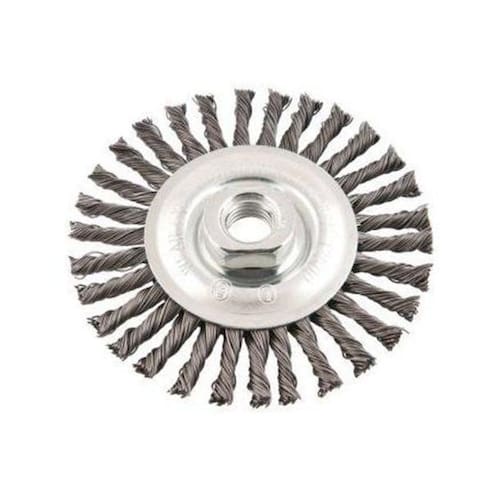 Conteúdo da embalagem1 Escova circular com roscaAplicações e dicas de usoIndicada para limpeza de peças em geral. Utilizada em esmerilhadeira angular.Destaques e diferenciaisPossui aço torcido que proporciona maior poder de remoção DETALHES TÉCNICOS Material/acabamento das cerdas da escova: Aço carbono/polido Tipo de cerdas da escova: Torcida Diâmetro externo da escova pol : 4.1/2 Espessura da escova pol : 1/4 Diâmetro da rosca da escova: M-14 Rotação máxima rpm : 12500 rpm