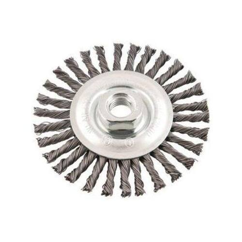 Conteúdo da embalagem1 Escova circular com roscaAplicações e dicas de usoIndicada para limpeza de peças em geral. Utilizada em esmerilhadeira angular.Destaques e diferenciaisPossui aço torcido que proporciona maior poder de remoção DETALHES TÉCNICOS Material/acabamento das cerdas da escova: Aço carbono/polido Tipo de cerdas da escova: Torcida Diâmetro externo da escova pol : 4.1/2 Espessura da escova pol : 1/4 Diâmetro da rosca da escova: M-14 Rotação máxima rpm : 12500 rpm Marca: Não Informado