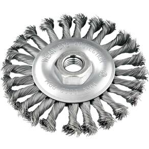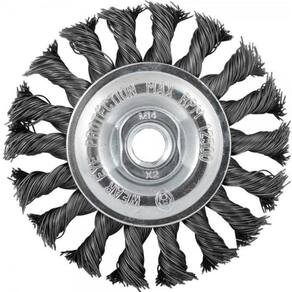 Conteúdo da embalagem1 Escova circular com roscaAplicações e dicas de usoIndicada para limpeza de peças em geral. Utilizada em esmerilhadeira angular.Destaques e diferenciaisPossui aço torcido que proporciona maior poder de remoção DETALHES TÉCNICOS Material/acabamento das cerdas da escova: Aço carbono/polido Tipo de cerdas da escova: Torcida Diâmetro externo da escova pol : 4 Espessura da escova pol : 1/2 Diâmetro da rosca da escova: M-14 Rotação máxima rpm : 12500 rpm Marca: Não Informado Ean: 7893946193461