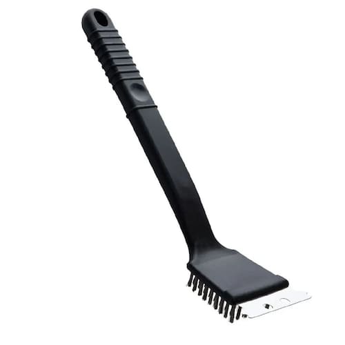 VALIDADE: INDETERMINADA TAMANHO APROXIMADO: 30X7CM PESO APROXIMADO: 90G TIPO DE PRODUTO: ESCOVA PARA GRELHA DE CHURRASQUEIRA COM RASPADOR + CABO COR: PRETO Ean: 3589981575747