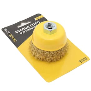 - 1 Escova Copo 3 Aço Latonado Ondulado Rosca M14 Tradestar