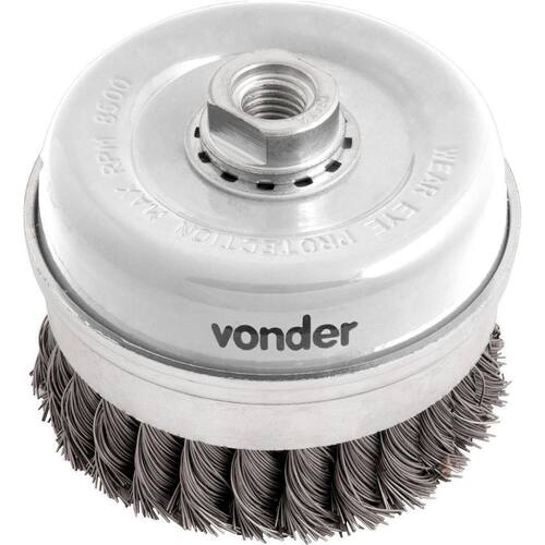 Conteúdo da embalagem1 Escova tipo copoAplicações e dicas de usoIndicada para limpeza de peças em geral. Utilizada em esmerilhadeira angular.Destaques e diferenciaisPossui aço torcido que proporciona maior poder de remoção DETALHES TÉCNICOS Material/acabamento das cerdas da escova: Aço carbono/polido Tipo de cerdas da escova: Torcida Diâmetro externo da escova pol : 4 Diâmetro da rosca da escova: M-14 Rotação rpm : 8500 Marca: Não Informado