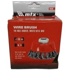 Especificações técnicas: - Diâmetro: 4 polegadas - Rosca M14 - Material: aço carbono - Tipo: escova copo trançada - Ideal para remoção de tintas e ferrugem em metais