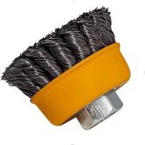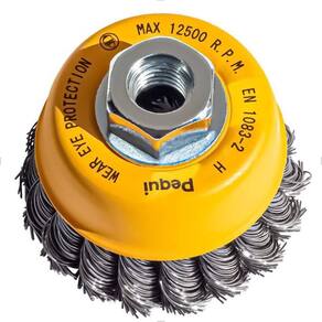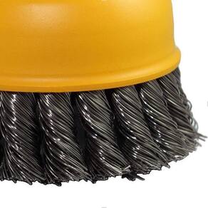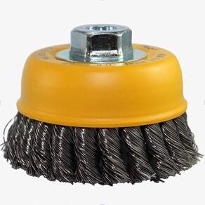 A Escova Copo Trançado Pequi 4" M14 Aço Temperado 0,50 mm confere uma maior capacidade de remoção, deixando um acabamento mais rústico, por ser uma escova mais agressiva.