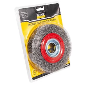 A escova de aço circular é a mais comum para uso em moto esmeril e equipamentos elétricos. Ela existe em vários tamanhos, pra ser encaixada em furadeiras, esmerilhadeiras e lixadeiras, e serve tanto pra limpeza como pra remoção de ferrugens, vernizes e tintas.