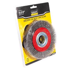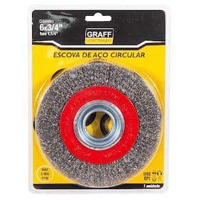 Marca: Graff Vantage A escova de aço circular é a mais comum para uso em moto esmeril e equipamentos elétricos. Ela existe em vários tamanhos, pra ser encaixada em furadeiras, esmerilhadeiras e lixadeiras, e serve tanto pra limpeza como pra remoção de ferrugens, vernizes e tintas. Marca: Não Informado