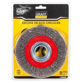 Marca: Graff Vantage A escova de aço circular é a mais comum para uso em moto esmeril e equipamentos elétricos. Ela existe em vários tamanhos, pra ser encaixada em furadeiras, esmerilhadeiras e lixadeiras, e serve tanto pra limpeza como pra remoção de ferrugens, vernizes e tintas. Marca: Não Informado