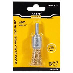 Escova De Aço Latonado Tipo Pincel Com Haste 571,0012 Graff A Escova de Aço Latonado Tipo Pincel destaca-se como uma ferramenta especializada para diversas aplicações. Projetada para remoção eficaz de rebarbas, ferrugem e pintura em nível leve, oferece versatilidade em trabalhos com aços, madeira e borracha. Compatível com furadeiras ou micro retíficas, proporciona resultados precisos e eficientes.